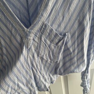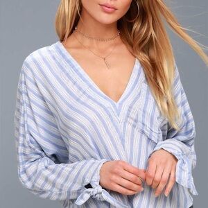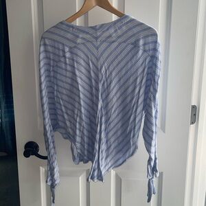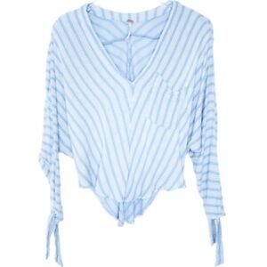Free People Morning Solid Blue and White Striped Long Sleeve Top $68 Blue White