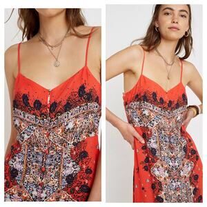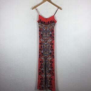 Free People Morning Song Red Floral Paisley Printed Button Lace Maxi Dress XS