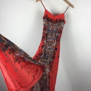 Free People Morning Song Red Floral Printed Button Lace Maxi Dress XS
