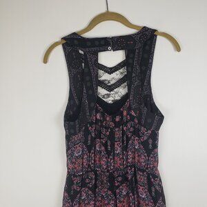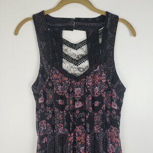 Free People Moroccan Printed Maxi Dress Black Lace Sleeveless Size 2
