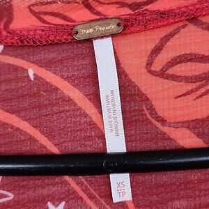 Lightweight and flowy feeling with a gorgeous boho pattern. Raw and frayed hems at neckline and sleeves.
