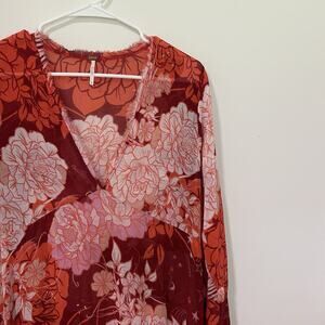 Free People Moroccan Roll Maxi Dress M Orange Red Flowers Boho No Slip Flaw
