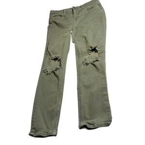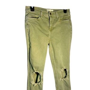 Free People Moss Green Busted Knee Distressed Jeans Sz 29