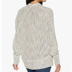 Free People Motions Cardi. This lightweight cotton blend open front cardigan features a related fit and dolman style long sleeves. Color is a woven black, cream, and grey mixture. Reverse braided hem detail gives this sweater bohemian flare. Comfy, soft, and drapey jacket perfect for chilly summer nights. Excellent condition. Women's size S small, measurements pictured.
