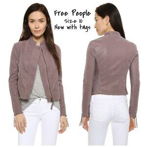 Free People Motorcycle Jacket Vegan Moto faux leather Size 10 Dusk New With Tag