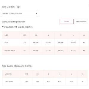 Measurements for a size XS/S: