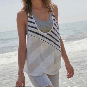 Racerback, Sleeveless, scooped neckline, color blocked detail and striped print