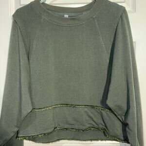 This Free People Movement sweatshirt is the perfect addition to your activewear collection! In a trendy army green color, this relaxed fit sweatshirt features a soft, cropped design with a unique fringe hem detail.