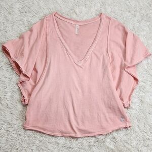 Free People Movement Artemis Tee Pink V-neck Flutter Sleeve Oversized XS