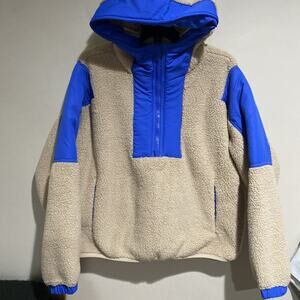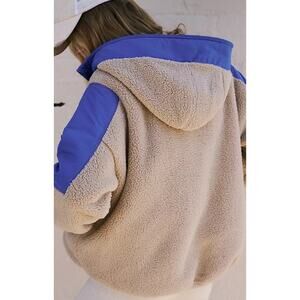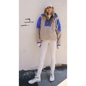 Free People Movement Beige Blue Lead The Pack Fleece 1/4 Zip Jacket Hooded XS