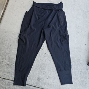 Stylish and versatile athleisure ribbed black cargo pants. Perfect for casual outings or outdoor adventures.