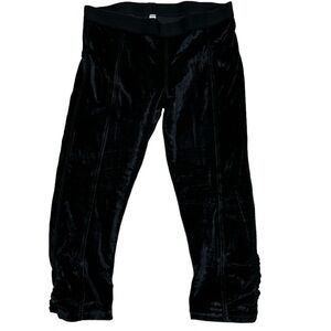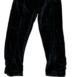 Free People Movement Black Velvet Cropped Leggings Elastic Waistband Shirred Hem