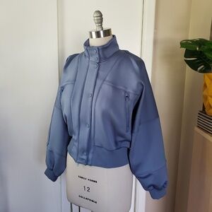 Design/Details: Free People Movement effortless and chic activewear jacket, styling has defined outer-seams, high neckline, elastic rib trim and side pockets. Jacket is lightweight and comfortable, providing airflow while keeping you cool. Design also features soft durable fabric, beautifully shaped dolman sleeves and UPF protection.
