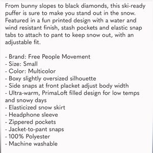 Free People Movement Bunny Slope Puffer Jacket Black Diamond Print Sz Small NWT