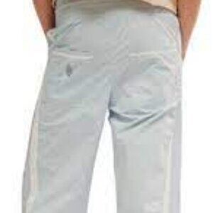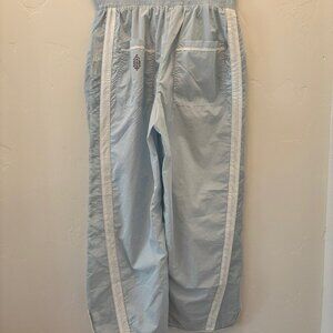 Features: Durable, nylon fabrication; water-resistant; contrast piping detail throughout; elasticated waistband with smocking detail; adjustable drawstring at waist; 7/8 length hits above ankle; tulip-style bottom hem