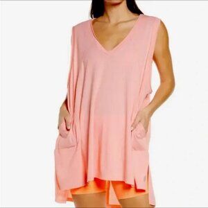 Free People Movement City Vibes Size XS Neon Coral Oversized Tank Tunic Top NWT