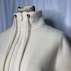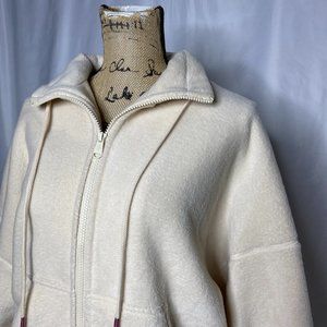 Free People Movement Climb High fleece zip up sweater jacket. Cream color. Full zip. Turtleneck neckline or collar if not fully zipped. Drawstrings. Pockets. Bell sleeves. Size M. Approx measurements while flat- pit to pit: 22.5", length: 21.5", pit to cuff: 18"