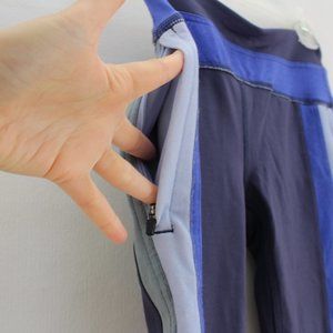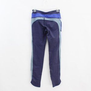 New with tags Free People Movement Leggings. Blue. Size XS. Logo detail. Side stripes. Colorblock. Curved hem. Zip pockets.