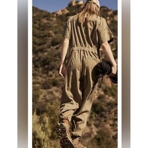 Free People Movement Coverall Jumpsuit Size XS Green Stone Washed Snap Utility