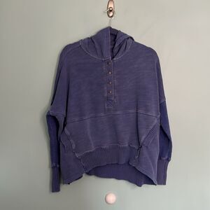 Free People Movement Dove Blue Hooded Cotton Sweatshirt