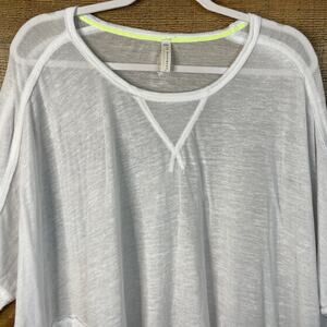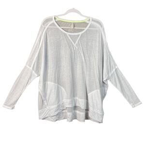 Free People Movement First Choice Tee. Style# OB985280. Size small. Color ~ White. Oversized slouchy fit. Semi-sheer soft material. Long dolman sleeve. Slanted hip pockets. Excellent condition. Measurements are in the pictures.