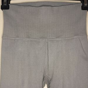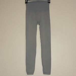 Free People Movement High-Rise 7/8" Length Good Karma Leggings. These Ultra-Flattering, Lightweight, Ultra-Soft Leggings have a Stretch Fit, Ribbed High-Rise Waistband, Rib Detail at Ankles, and Perforated Detail on Back of Legs for Breathability. The Leggings are a Darker Shade of Gray than the Stock Photo. Excellent Condition.