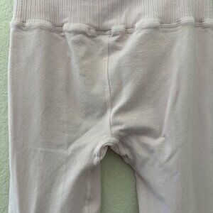 Free People Movement good karma seamless leggings, pull-on flat front. Ribbed compressive waistband, breathable pinhole, stretchy. No stains no rips. Nylon spandex blend, machine wash. Made in USA