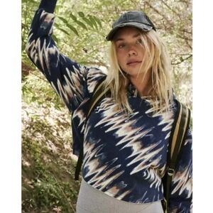 Free People Movement Half Time Printed Hoodie Navy NWOT
