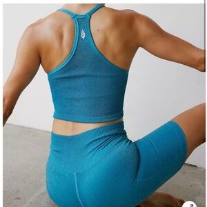 Free People Movement Happiness Runs Lurex Crop Tank in Off Tropic XS/S Sparkle
