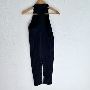 Features: Buttery soft fabrication, sleeveless silhouette, high neckline, breathable mesh detail at sides of bust, low-cut armholes, back-zip closure, seam detail