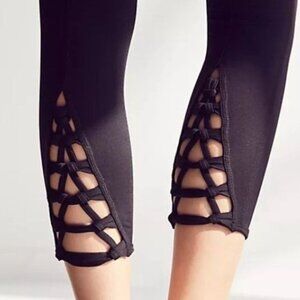 Free People Movement High Waist Black Cropped Lace Up Athletic Leggings