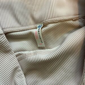 Stylish high-waisted cream leggings. Perfect for casual wear or workouts.