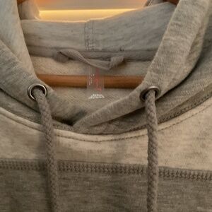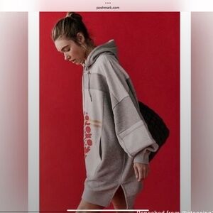 Lovely long hoodie from FP Movement. Heather gray and white combo with red/orange graphics. New condition. XS