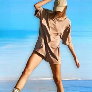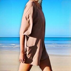 This soft romper is featured in an oversized fit and shapeless silhouette with pockets at the front and V-shaped back detail.