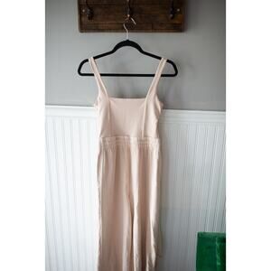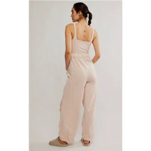 Features: Soft fabrication with stretchy feel; square neckline and detailed bust seaming; large side pockets; ruching around the knee; elastic ankle cuffs; straight-leg bottom; adjustable drawstring waistband
