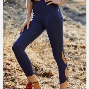 Free People Movement Infinity Cut Out Mid Rise Cropped Leggings Navy Sz XS
