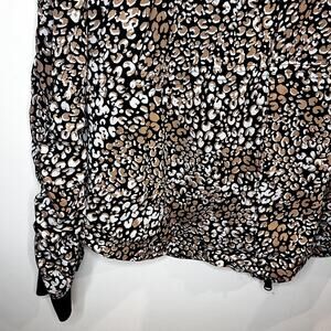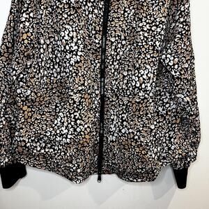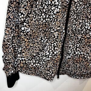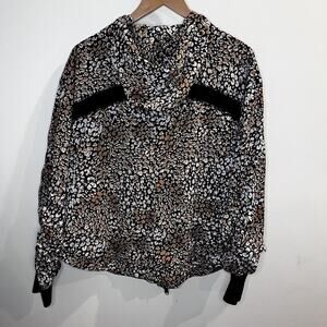 FP Movement Jacket Womens Small Black Tan White Animal Print Leopard Hooded Zip Up. Oversized and slouchy