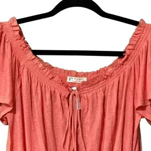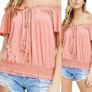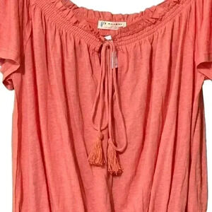 Free People Movement Linen Blend Blouse M Pink Off the Shoulder Tassels NWT