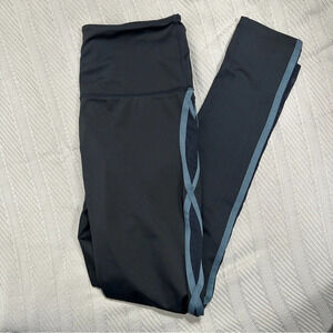 Free People Movement Liza leggins in black with gray trim. Cute side detail with mesh inserts. Size Small, mid-rise. In outstanding condition.