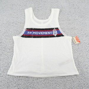 Free People Movement Logo Graphic Tank Top Women's Size Large White NEW