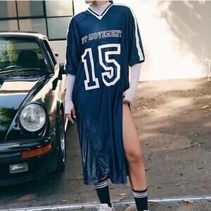 Free People Movement Navy Combo Happy Camper Tee Shirt Maxi Dress Sz S
