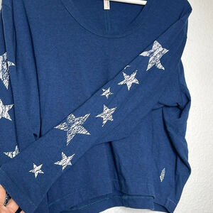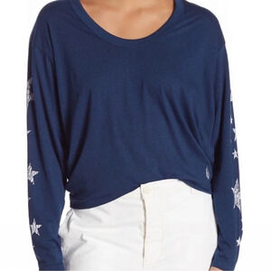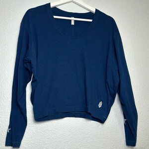Free People Movement Navy Star Print Sleeve Long Sleeve Crop Top Size X Small