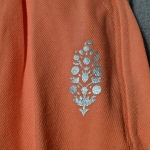 These are super cute bright orange oversized cotton pants with wide waist band and sweet zipper pocket in the back.