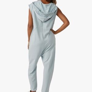 Free People Movement Nothing But Sweats Hooded Jumpsuit Pockets Blue S Oversized