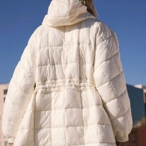 Free People Movement Patricia Packable Poncho Puffer Coat Drawstring Ivory M