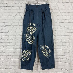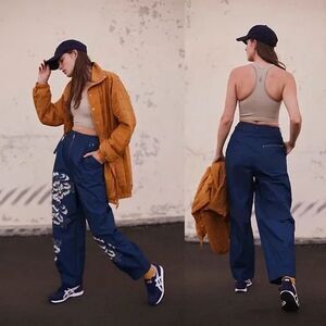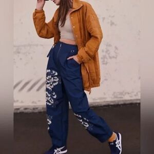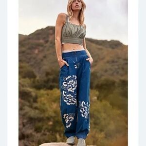 Free People Movement Pep Rally High Waist Pants Indigo Floral Combo Women's M.