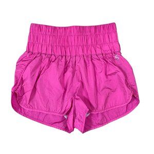 Free People Movement Pink High Rise Smocked Waist Dolphin Hem Nylon Gym Shorts M