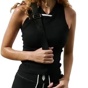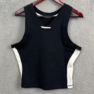 Free People Movement Power Walk Tank Jersey Knit Sporty Sleek Black White SZ XL