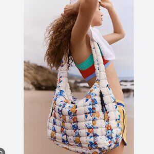 FP Movement by Free People Printed Carryall in Tangerine Dream. The beloved quilted carryall sling, with zipped pockets for essentials, is revamped with a fun print, making it the perfect addition to your summer wardrobe.