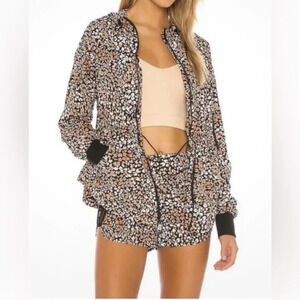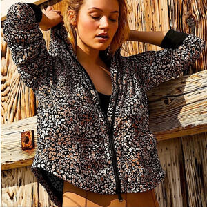 Perfect for outdoor runs and workouts, this printed lightweight warmup jacket is featured in a relaxed fit with a hood and subtle eyelet detailing. Oversized